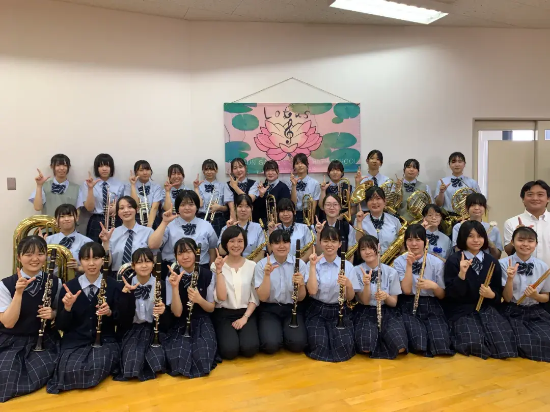 吹奏乐部队名叫做“Lotus”,同学们每天都快乐地训练着。“Lotus”的含义是“无论在什么样的环境下,都希望你不受其影响,坚持信念,绽放美丽的花朵”。