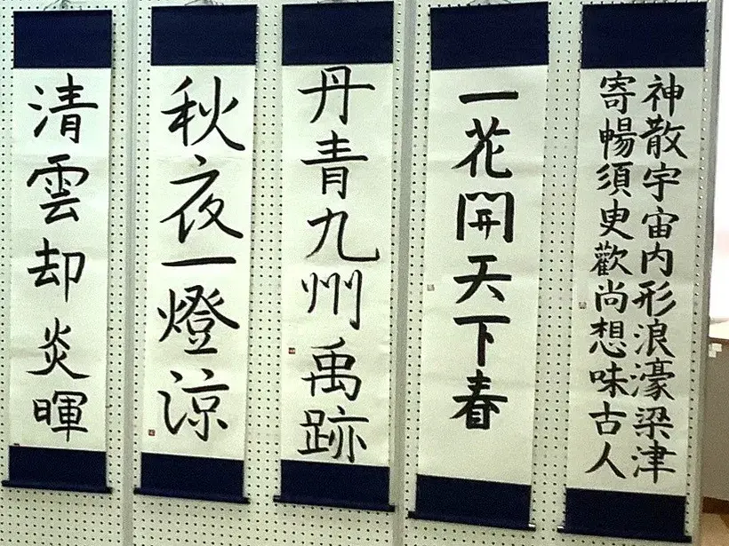 书法部不仅有个人作品展,还有团体书法表演。同学们不断地练习着。在书法表演时,同学们会身着传统服饰“袴”,被很多人夸奖说“好帅!”。