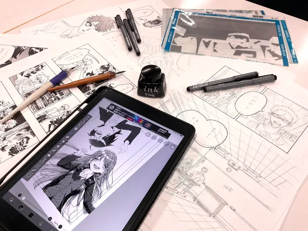 漫画研究部也有很多漫画动画课程以外的成员。在这里没有前后辈,大家可以畅所欲言。漫画研究部还会为校内杂志和“好文明华祭”的周边画各种插画。