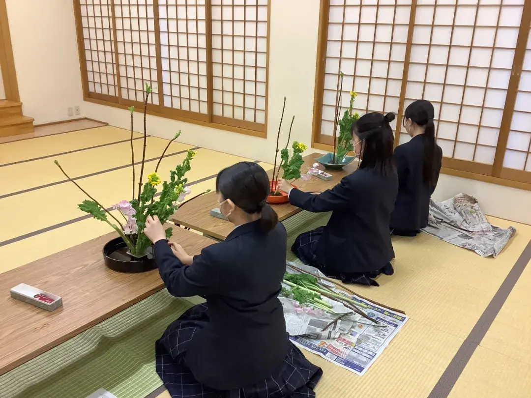 会有专业的花道老师来进行指导,在“好文明华祭”上会展示同学们日常学习的成果,还可以用插花来装饰自己的家。