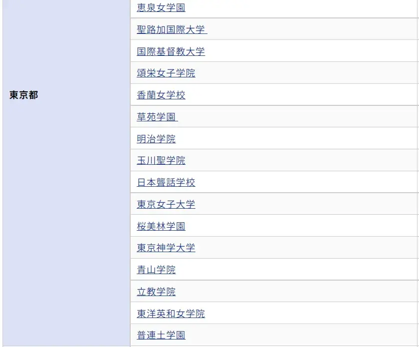 我们总结了日本“基督教学校教育同盟”的名单,大家可以了解一下。