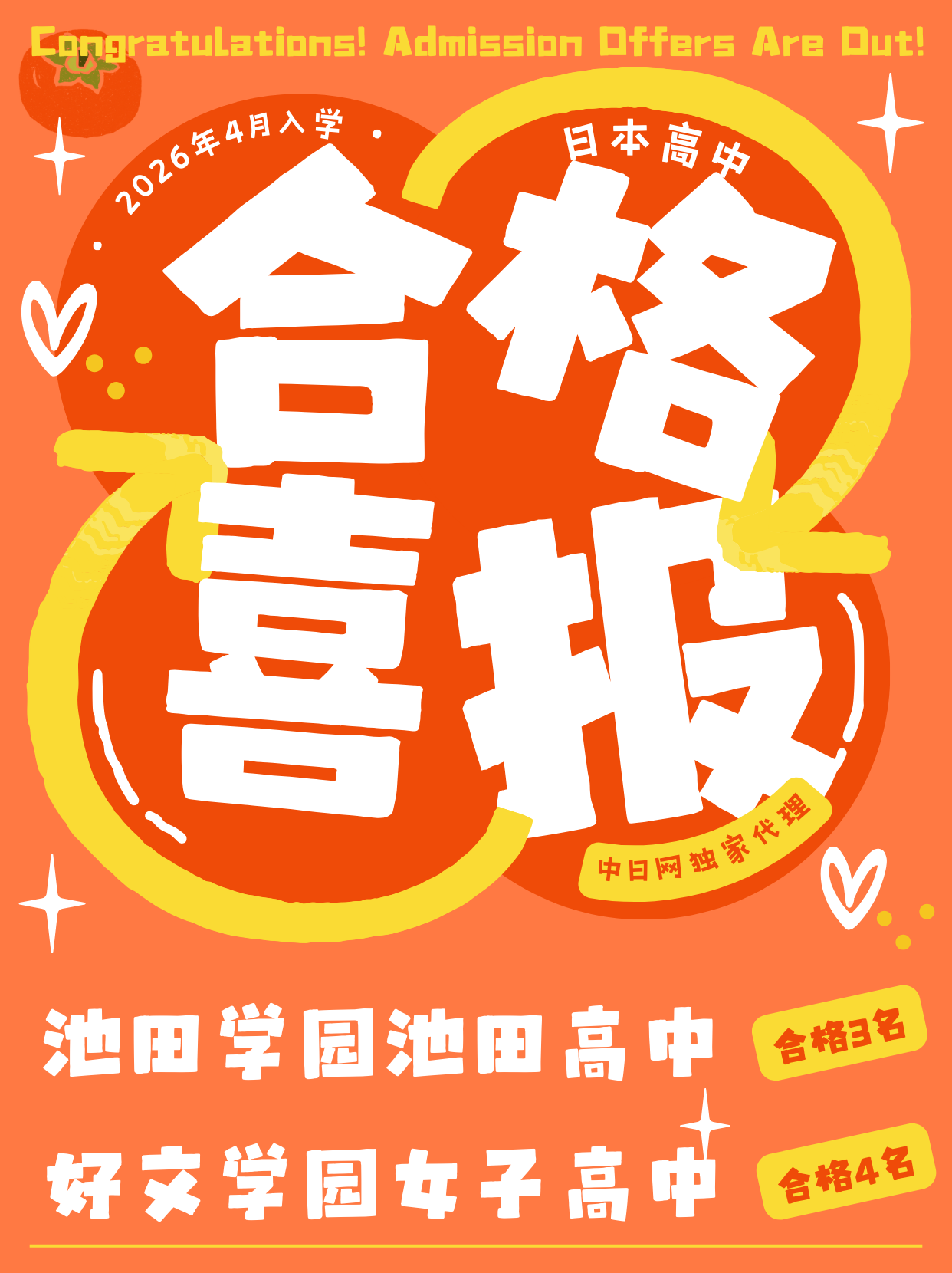 就在上周,池田学园池田高中、好文学园女子高中、山梨英和高中在上海的留学生招生考试刚刚结束!!合格喜报便火速传来——这次我们有3名男生成功合格池田学园池田高中!4名女生拿下好文学园女子高中!超棒!!不过山梨英和的合格名单还在路上,需要再耐心等一等,很快就会有消息哒~