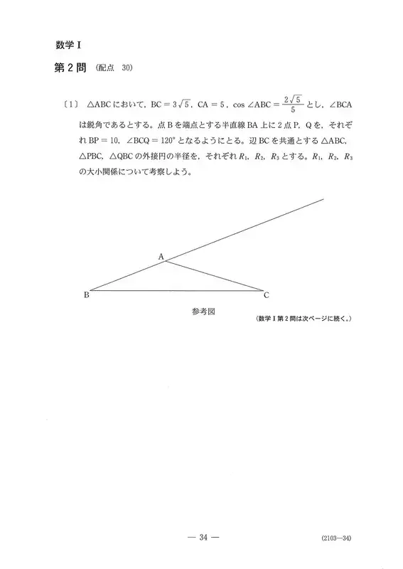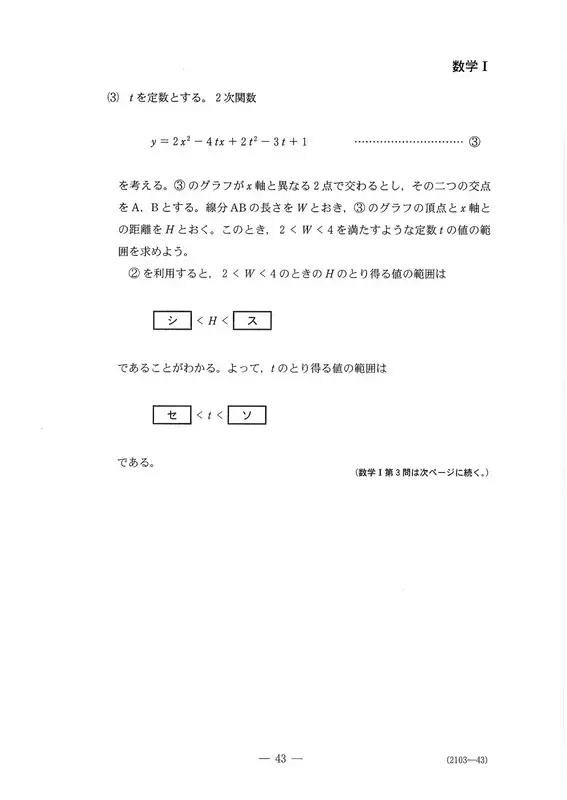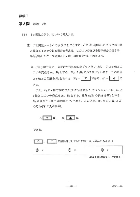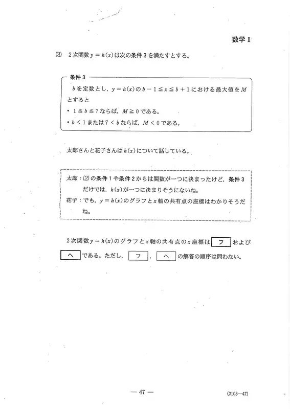第3题“二次函数”(30分)〔2〕与数学I、A共通