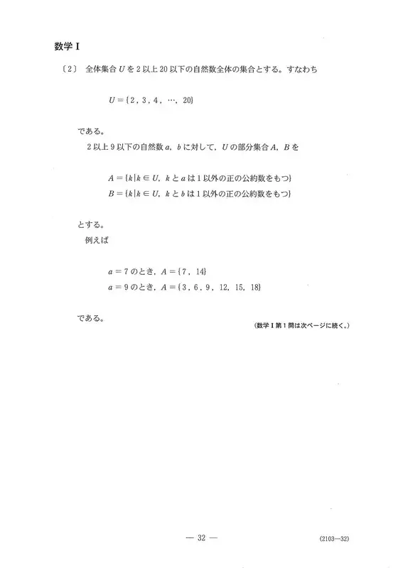 〔2〕是一个自然数a、b和1以外的公约数集合a、b的问题。问题文中也有例子,所以很容易解决。(1)针对给定a、b确定集合a、b的问题。(2)是根据A、B的条件求A、B的值的问题。