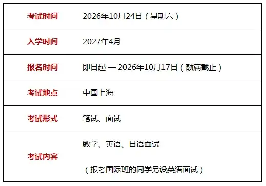 2027年入学考试信息